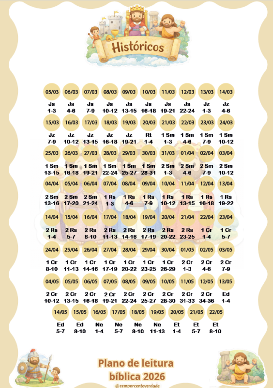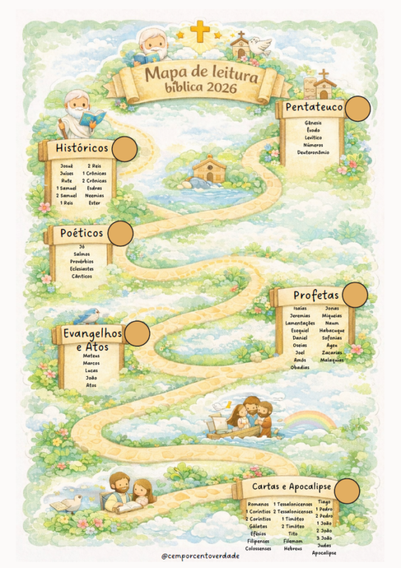 Descrição: Versão atualizada do plano de leitura anual da Bíblia para crianças, estimulando o hábito diário de leitura bíblica.